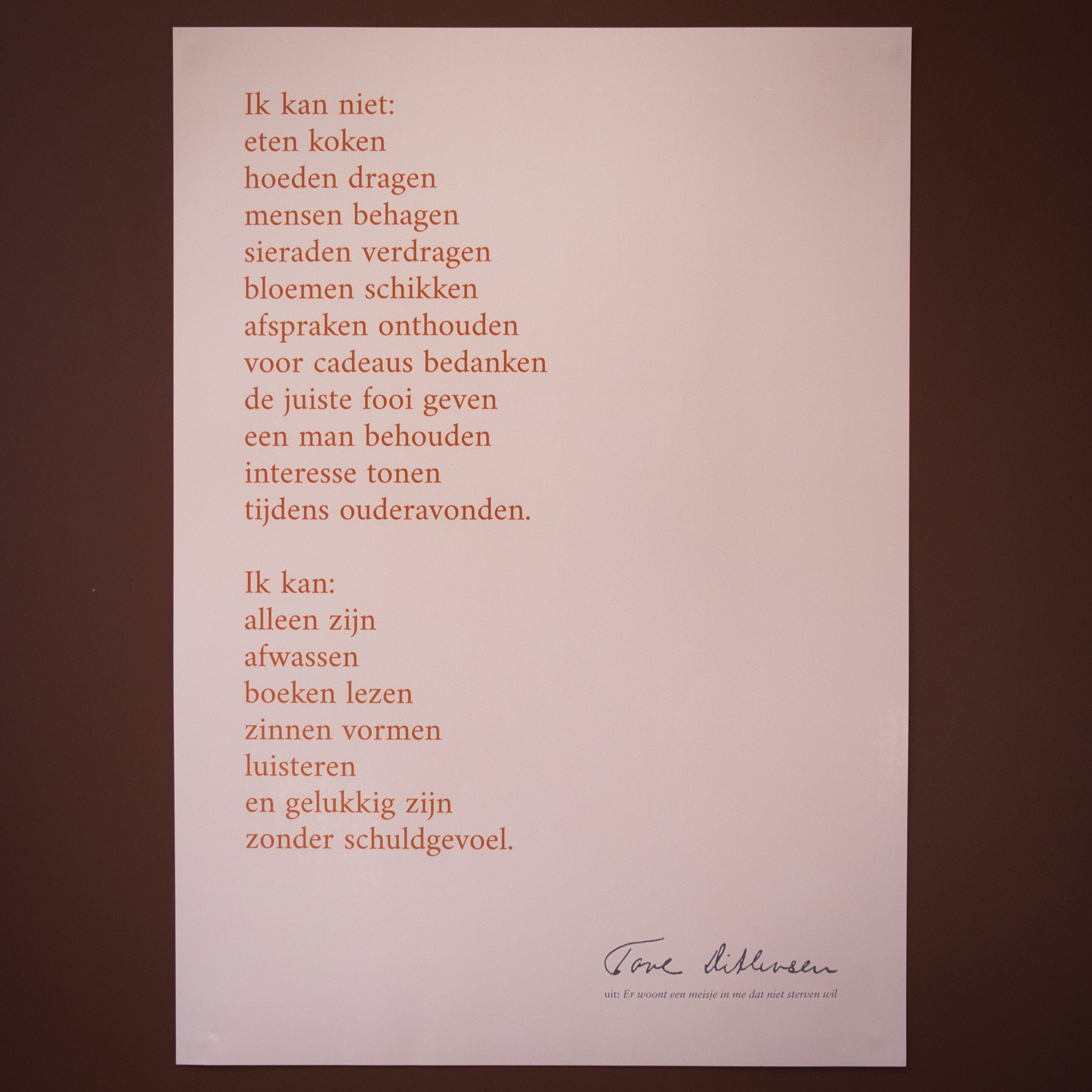 Nu brengen we haar gedichten voor het eerst in Nederlandse vertaling uit: Er woont een meisje in me dat niet sterven wil. Voor de liefhebbers hebben we deze poster gemaakt: een gedicht uit de bundel, op A1-formaat.